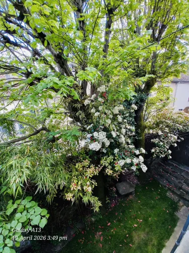 Fully walled garden with a magnificent and large ancient oak porte cochere (possibly one of the oldest coach gates in France). The courtyard has an ancient stone archway and walls with two magnificent linden trees and an ancient stone bench and steps. The garden has a terraced area and is fully enclosed with stone walls and is without vis-à-vis; it has a variety of fruit trees (apple, cherry, almond, and peach), a wood shed, and off-street parking.
