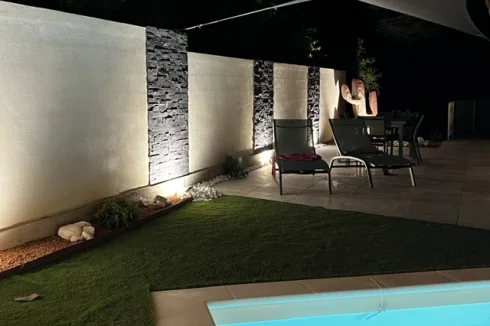 A beautifully integrated saltwater swimming pool creates the perfect setting for relaxation, while the pétanque court adds a true touch of southern French lifestyle and conviviality.