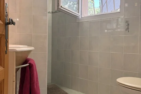 The sleeping area is thoughtfully arranged to provide privacy and independence. The property includes three generously sized bedrooms, each designed as a suite with its own private shower room and toilet. The master suite also benefits from a dressing area.