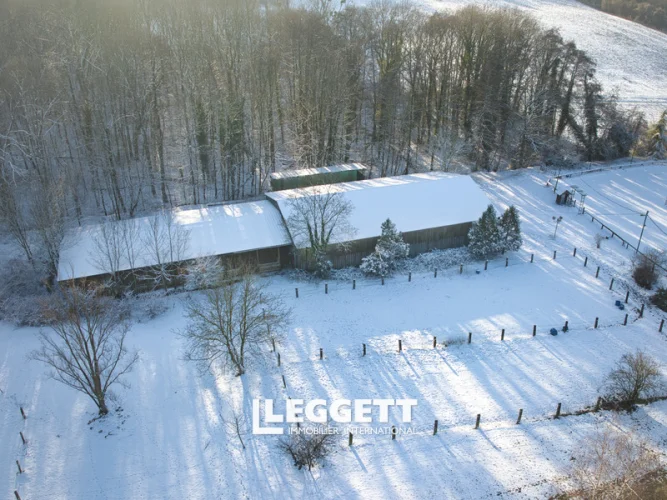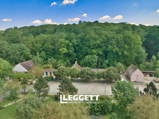 nestling between Bethemont la Foret and Taverny on 3.8 hectares of land on the edge of the Montmorency forest. virtual visit available on request. The facilities include a ground-floor building with a spacious clubhouse featuring a large fireplace, offices and a small kitchen. Upstairs is a F2 flat with a kitchen opening onto the living room, a bedroom and a shower room with toilet. The site also includes several buildings, including 2 studios for staff, boxes, riding arenas, paddocks and a large reception room.