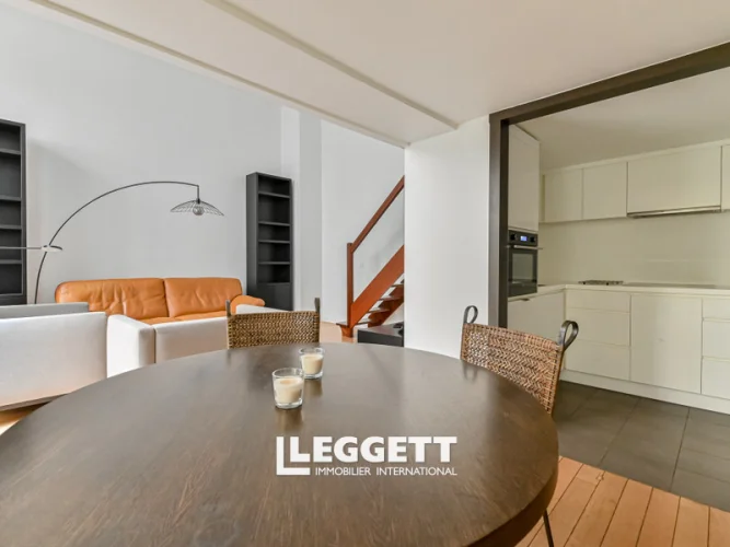 75003, Haut Marais, lovely 2P (T2) apartment for 64 m2 + private 27m2 garden on the ground floor of a beautifu - ARIS 3e - Métro Temple ou Arts et Métiers - 2 Rooms (T2) - 64 m2 + terrace 27 m2 - Energy label class F - See 360 visits and map - Close to rue de Bretagne and square du Temple. The property is located on the first floor of a beautiful, superbly maintained building dating from 1894. The American loft-style property comprises an entrance hall with a dining area and a semi-open, fully-equipped open-plan kitchen. The living room, with 4m high ceilings, gives access to the private terrace. Overlooking the living room is the mezzanine bedroom with its own dressing room and shower room, and a separate toilet. Thanks to its location, this property is a haven of peace. The property is located in the heart of the Marais district, just a stone's throw from the Marché des Enfants Rouges. This effervescent district offers a wide choice of trendy restaurants and cosy little cafés. The cultural aspect is also present with a large number of contemporary art galleries and museums such as the Musée Pic