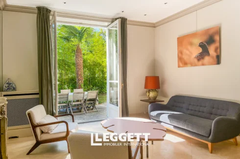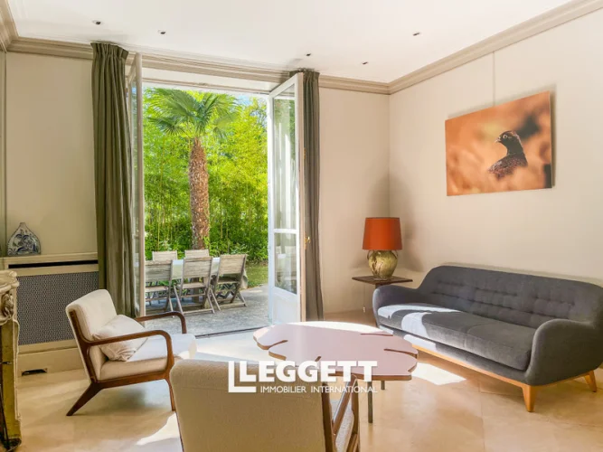 The south-facing rear façade provides plenty of light and opens onto the tree-lined garden.