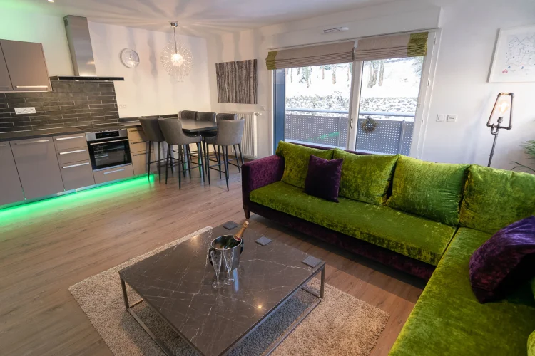 o A bright living room with fully equipped open-plan kitchen (29,50 m2) opening onto a balcony