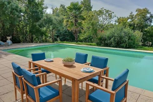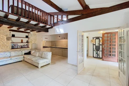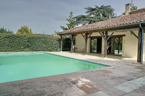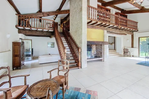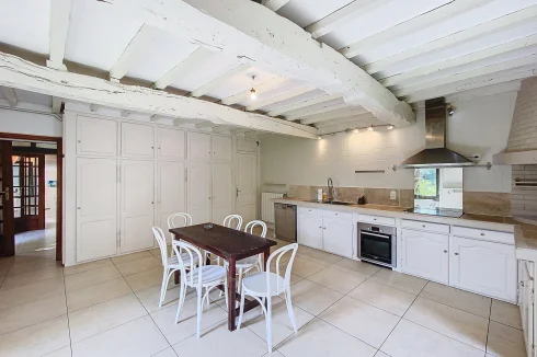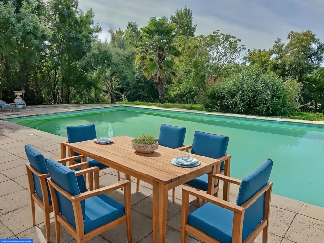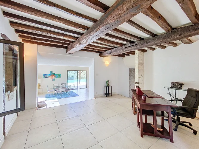 In the main house, a large vestibule with cloakroom and toilet gives access to a spacious kitchen as well as a vast space bringing together the dining room, the TV lounge as well as the summer lounge whose large bay windows open onto the terrace followed by the swimming pool.