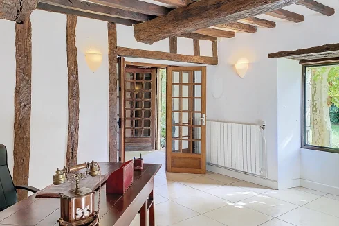The entrance to the property is protected by an electrified gate with digital code and remote control which opens onto a beautiful tree-lined driveway.