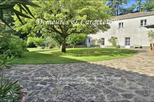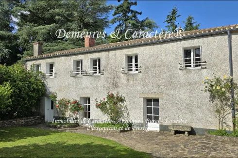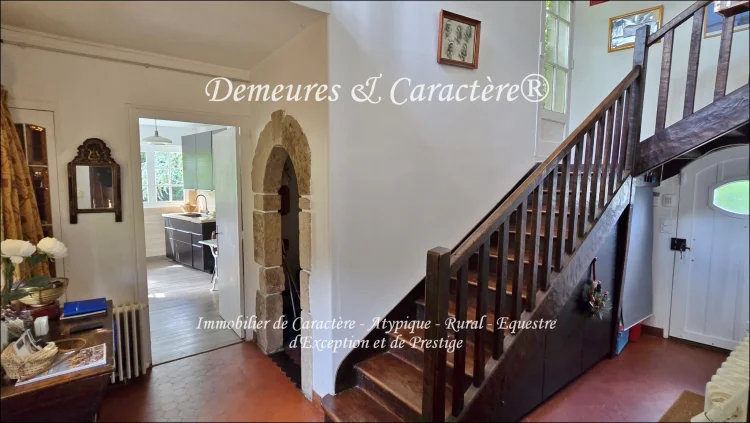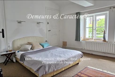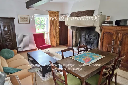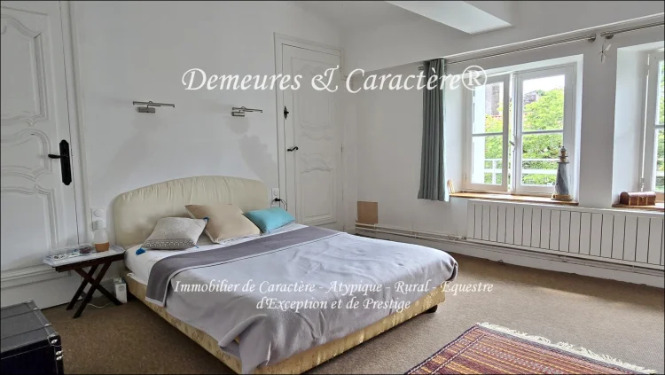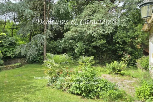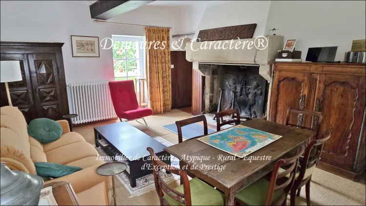 Mansion from the 1600s and its gîte or second home + outbuildings and garage, all on 1,512m2 benefiting from a remarkable setting and an advantageous location (all amenities and walking trails in the immediate vicinity, on foot) in the quiet of a pleasant and well-equipped village. The Residence is bright, its atmosphere warm, many period features remain (fireplaces, beams, stained glass, doors and handles, ...). A beautiful high ceiling contributes to the balanced volumes of its rooms. This comfortable character house (350m2, 6/7 bedrooms) is composed, on the ground floor, of a small and large entrance hall, cloakroom/storeroom and toilets, spacious AE kitchen (from 2022) with fireplace/barbecue, dining room with monumental fireplace, library lounge with monumental fireplace, TV corner and office space, en suite bedroom with shower room. Ceramic floors, terracotta tiles, stone paving and carpet on concrete slab. Upstairs: Mezzanine over the large entrance hall and stairwell, corridor and hallway leading to 5 additional bedrooms (some with balcony, closet and/or decorative fireplace, etc.), room used as a dressing/storage room or possible 7th bedroom, 4 bathrooms or 'vintage' shower room, WC. Old solid parquet floors, carpet on concrete slab and tiled/ceramic. Central heating by OKOFEN Pellematic system from 2022 distributed by cast iron radiators, DHW produced by 3 electric water heaters, superior insulation, stone wall and plaster with partial lining, single-glazed frames in the main, recent secure entrance door, traditional wooden shutters, DPE energy classification in category C, electricity redone in 2023, tile roof redone in 2024, some finishing work or repainting is to be expected, the house is connected to high-speed fiber internet. The main rooms (kitchen, dining room, and library lounge) offer direct access and particularly pleasant views of the south-facing terrace and the private garden. Natural stone terrace, covered patio/relaxation area.