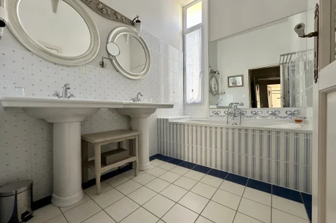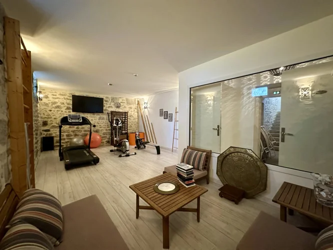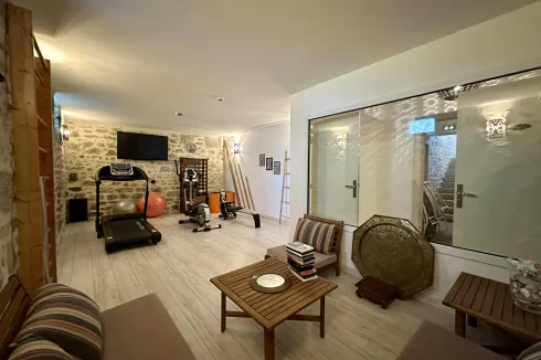 From the main entrance level, authentic stone stairs lead to the basement which boasts a sumptuous gym with comfy relaxation area, along with a laundry, commercial-grade air source heat pump, wine cellar, store-room and a substantially-completed steam-room with changing-room and toilets.