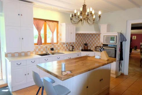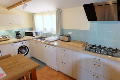 The guest house is totally self contained with a double height open plan living room, fully fitted kitchen, two double bedrooms and a childs bedrooom, shower room with WC.