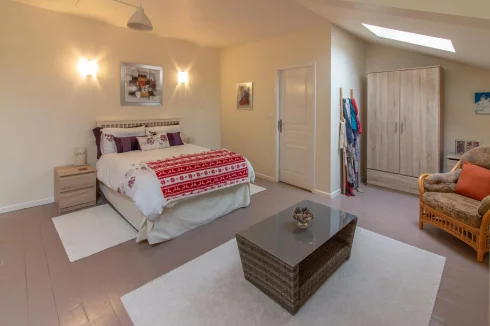 Upstairs, the large master suite is accessed via its own private staircase and comprises a large double bedroom with en suite bathroom.