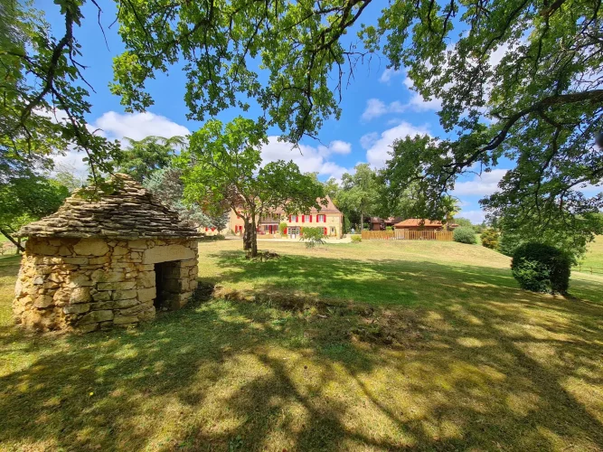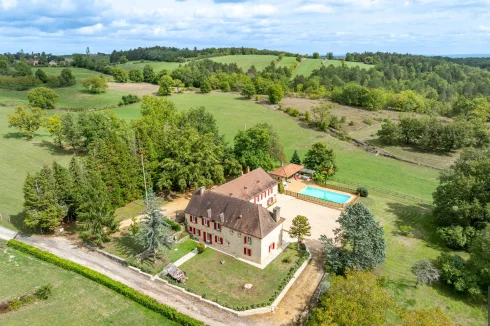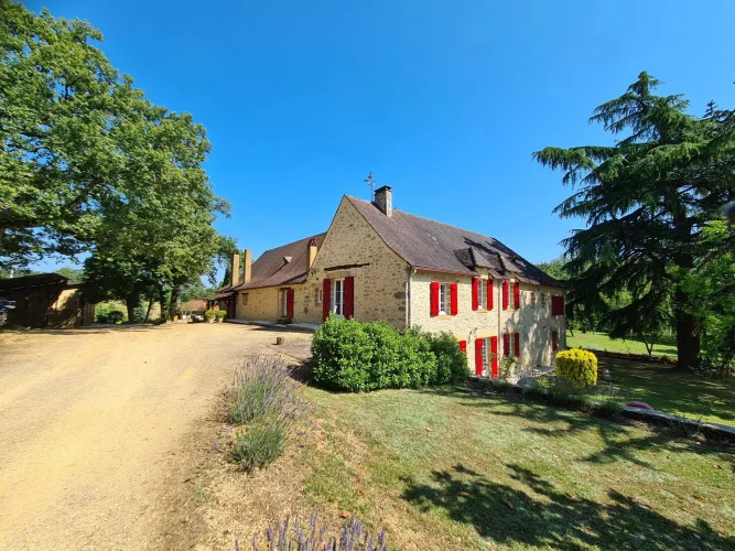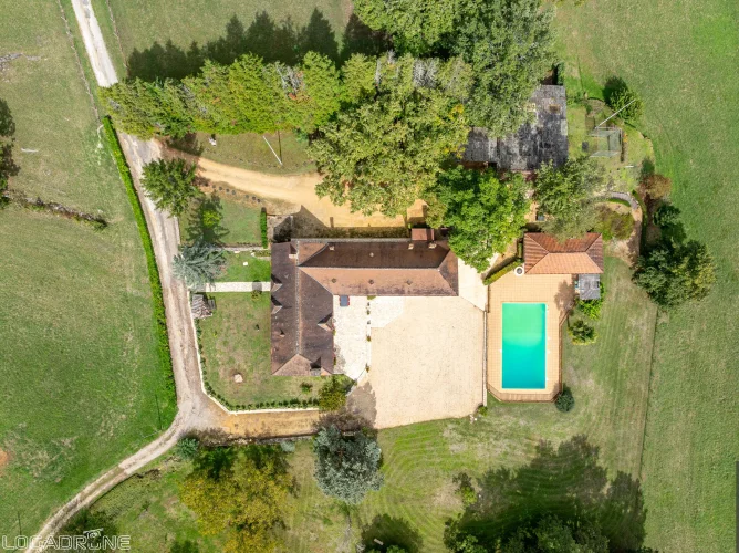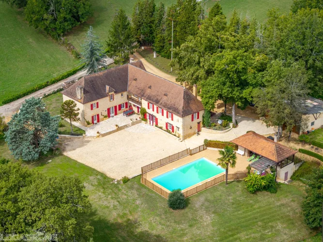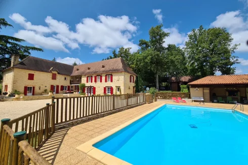 Located in the heart of the Périgord Noir, close to the charming village of Daglan, this magnificent estate comprises a manor house with a 2-bedroom guest apartment, a 1-bedroom guest house with a mezzanine that could serve as a second bedroom. Also on the property there is a barn with a carport, and a swimming pool with a pool house. All of this is set on over eight hectares of land in a very peaceful and tranquil setting with views over the countryside.