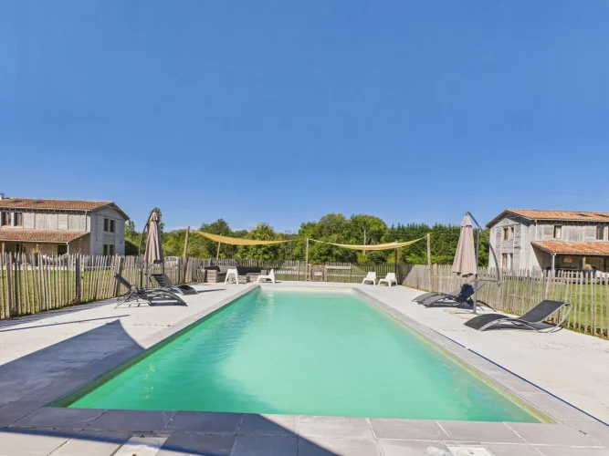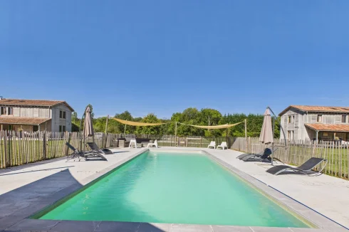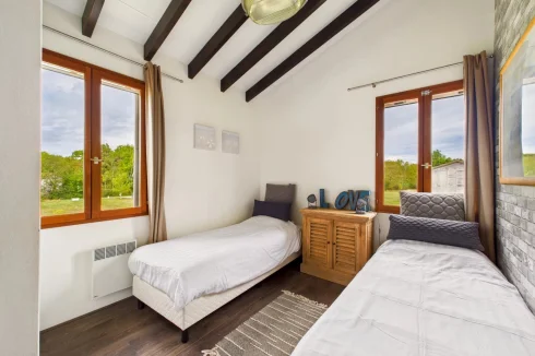 Outside, the two homes share a beautiful swimming pool surrounded by sun terraces, a perfect setting for long summer days. Each property also features its own covered terrace area, ideal for al fresco dining, lounging, and enjoying evening drinks while watching the sunset.