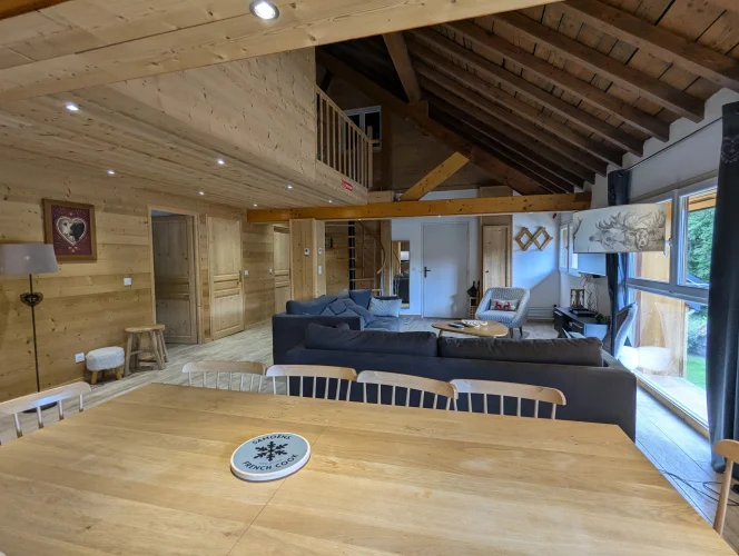A large 5 bedroomed duplex apartment in a beautifully location in Samoens, close to shops with a Skibus stop in front of the front door. This is an ideal location for a "year-round" property and perfect for a rental project.