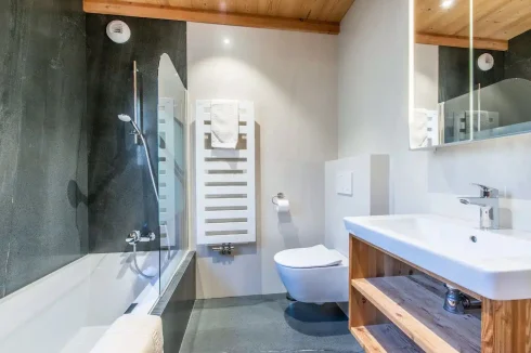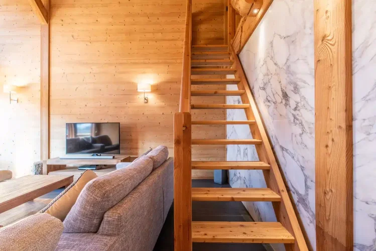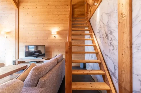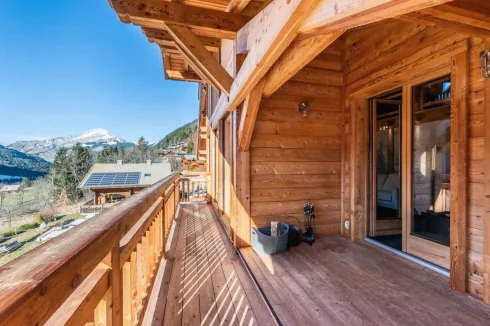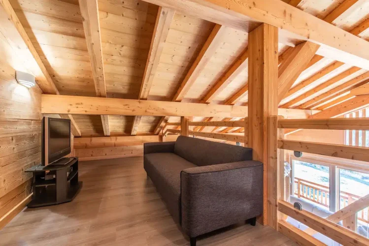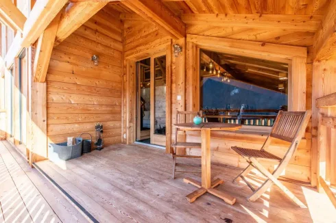 This chalet also offers many spaces dedicated to relaxation and well-being including a sauna, jacuzzi and large south-west facing balcony.