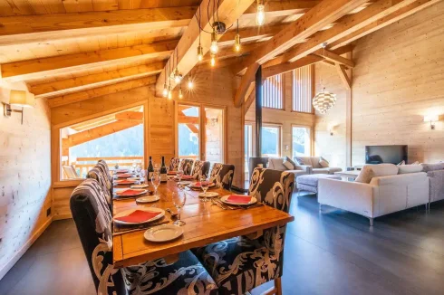Located just 1km from Chatel village centre, this superb chalet combines the charm of traditional Alpine architecture with contemporary materials and careful decoration. The total surface area of 319m2 is designed to offer a comfortable and attractive living environment.