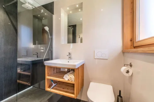 Ground Floor: entrance with hallway, 5 further bedrooms (3 with en-suite bathrooms and 2 with direct access to the South-West facing balcony), bathroom, entrance to hallway and ski room with boot warmers, access to the South-West facing balcony.
