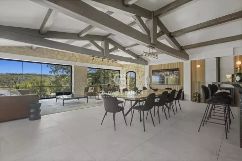 The property has many terraces to make the most of the outdoor spaces and panoramic views of the hills and the forest.