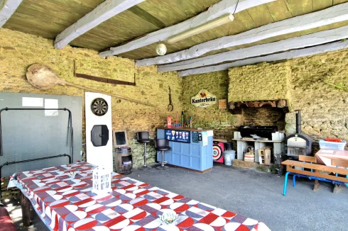 The main house comprises three bedrooms, one of which is on the ground floor, a large kitchen-diner with antique bread oven feature, ideal for families and for entertaining, as well as a ground-floor shower room, WC a pantry, two bedrooms on the first floor and additional storage space.