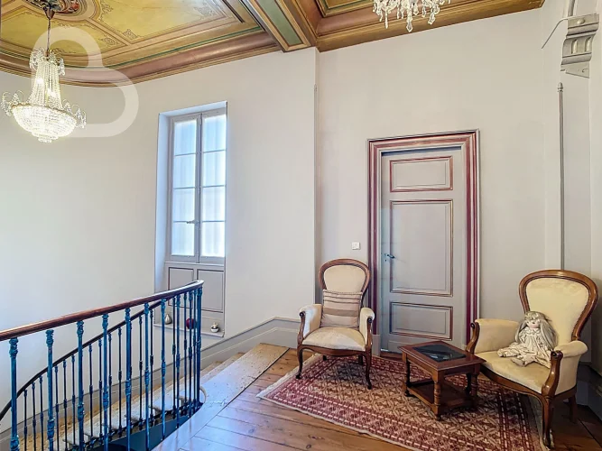 This impressive 19th-century mansion is located in the centre of Agen, just five minutes from the TGV station with direct connections to Paris, and within easy reach of the international airports of Toulouse and Bordeaux, both of which are an hour or an hour and a half away. The property is surrounded by a beautifully landscaped park spanning over 2,000 m2 and exudes prestige and elegance.