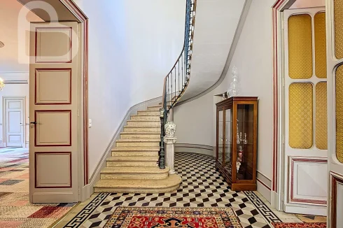 An elegant stone staircase leads to the first floor, which has five spacious rooms and four bathrooms, including a luxurious master suite. One of the rooms already has a kitchenette.This floor can be furnished as a large apartment or as an entire sleeping area.The second floor offers an additional bedroom with an en-suite bathroom, an office, and an impressive 175 m2 attic space that can be converted as desired.