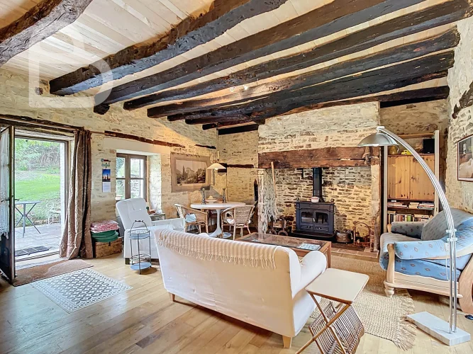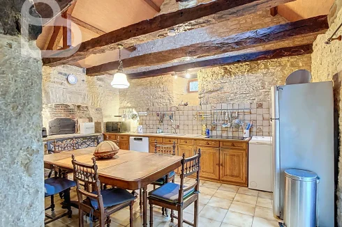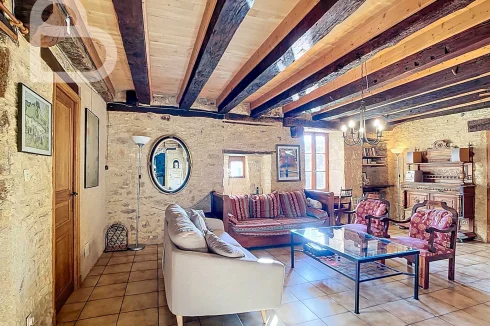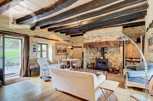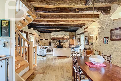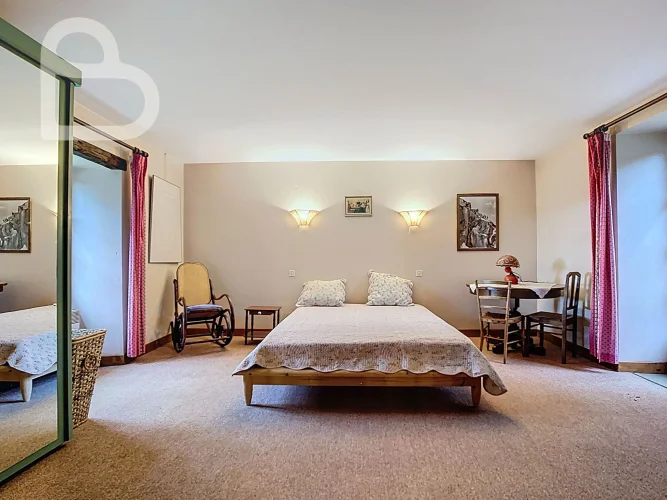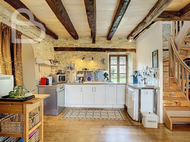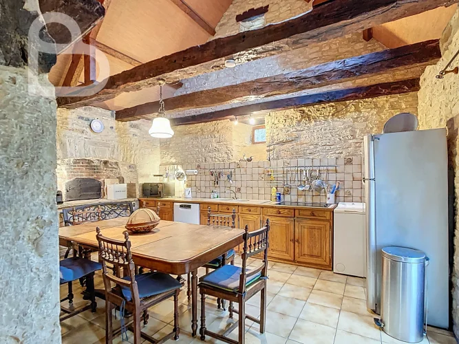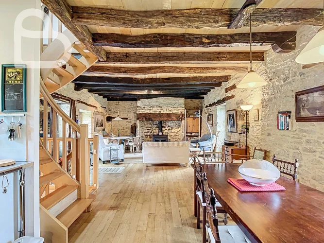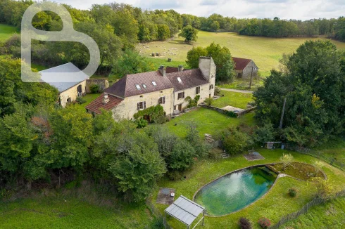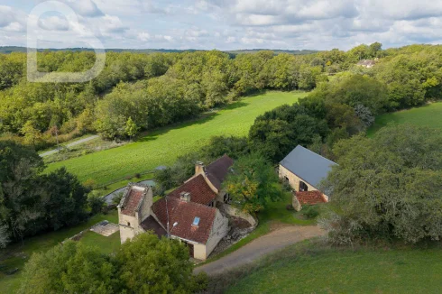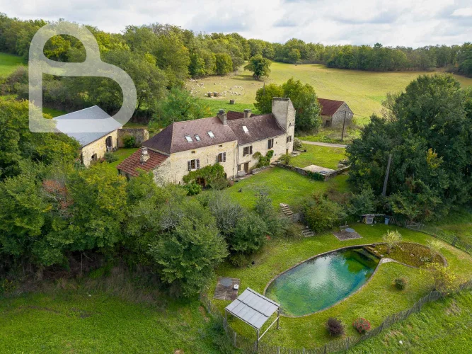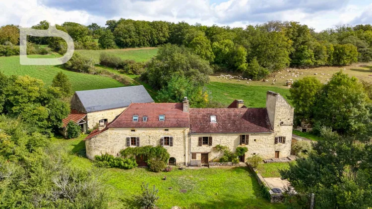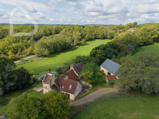 At the end of a quiet lane, this authentic stone estate offers two adjoining houses, a spacious barn (approx. 98 m2, new roof) and a beautiful natural swimming pond.Set on 2.4 hectares of mainly pastureland, it's perfect for horse lovers or anyone seeking space and tranquillity.Each house has 3 bedrooms, 2 bathrooms and its own terrace. Exposed beams, stone walls and a bread oven add to the property's warm, rustic character.Peaceful location just 10 minutes from amenities, with Brive and Bergerac airports about an hour away.