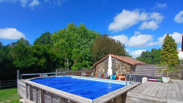 The second and third properties share a lawned garden, a decked area with an ourdoor kitchen and anabove ground pool. Both gardens overlook the large plot of land of 2.3 hectares behind.