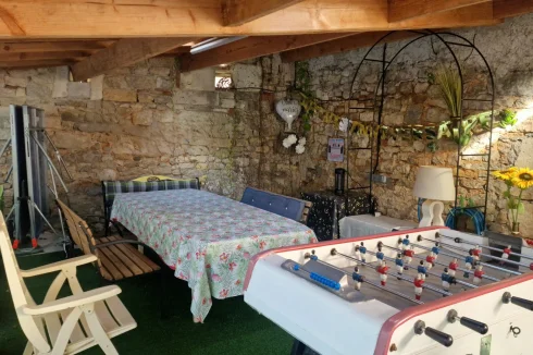 Just a few minutes from Prayssac and the most beautiful villages of the Lot, Selection Habitat offers you this magnificent, fully renovated stone building that combines old-world charm with modern comfort. Offering nearly 450 m² of living space on two levels, it is located on an adjoining plot of approximately 1,500 m², completed by a habitable outbuilding of 45 m² on two levels. Added to this beautiful complex are 6.5 hectares of woodland and an old truffle farm (not adjoining). Practical advantage: direct access to the Monsempron-Libos / Cahors bus line, facilitating travel to the urban centers of this line. The main building is composed as follows: On the ground floor: - a large living / reception room of 80 m² including a lounge area, a dining area, a bar area, a technical room and a separate toilet. Ideal for entertaining - An apartment composed of a large living room of 60 m², a bedroom with shower, a hallway leading to a bathroom and separate WC as well as a kitchen also giving access to the reception room Upstairs, a long corridor serves: - 5 large bedrooms, each with its own bathroom, dressing room and separate WC - A laundry room - A staircase leading to the attic The outbuilding (45 m² of living space on two levels) includes: - A living room / dining area with open kitchen - A bedroom - A shower room - WC Outside, the building is located on a plot of approximately 1,500 m², planted with trees and maintained. 6.5 hectares of woodland and an old truffle field, not adjoining, complete this ensemble. An ideal property to accommodate family, friends or for rental use (gite, bed and breakfast, etc.). This property is a real opportunity not to be missed.