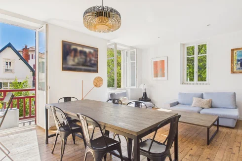 In the heart of Biarritz, a stone's throw from the Jardin Public, discover a renovated 100 m² apartment located on the 1st floor of a lovely condominium with only two owners. This dual-aspect apartment, bathed in natural light all day long, is a perfect balance between comfort and practicality. It features three spacious bedrooms, a generous living room, a fully equipped open-plan kitchen, and a contemporary bathroom. No work is required. Available immediately, this property will seduce with its calm interior while being located in one of the most sought-after areas, close to shops, restaurants, public transport, and green spaces. A garage is also available for sale, a 2-minute walk away—a rare asset in the city center for parking or storage. The condominium is intimate and confidential, guaranteeing simple management, controlled expenses, and true peace of mind.