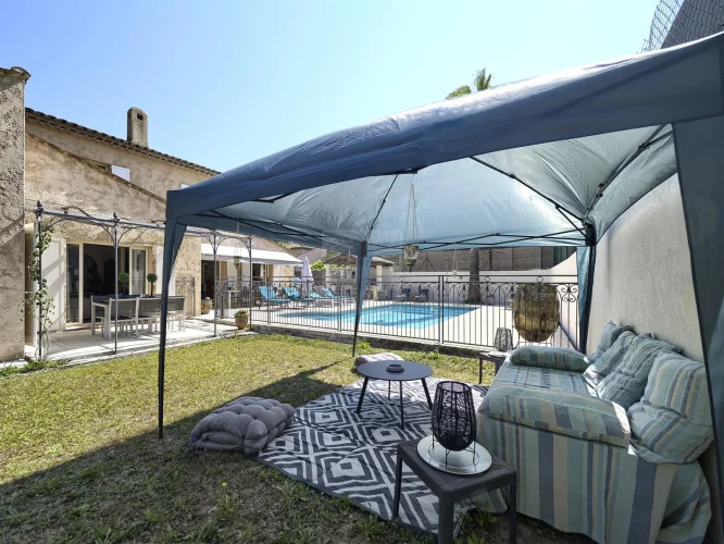 Rare opportunity for heritage investment! Charming house ideally located, quiet yet close to all amenities. Built in the 1990s, with a living area of 180m2, this property can be discovered as follows: A beautiful entrance opening onto a large living room with fireplace, a separate kitchen connected to the garden and the swimming pool. A master bedroom with its dressing room, bathroom and guest toilet, a dormitory bedroom and an office Upstairs: 3 bedrooms and a shower room and a separate toilet A huge basement of 130 m2 completes this property (possibility of wine cellar, home cinema, etc.) Beautiful, easy-to-maintain garden with its swimming pool, pool house and numerous terraces. 7 parking spaces Reversible air conditioning Life usufruct reserved for a couple aged 74 and 78 Full ownership value: 940,000 euros Value of bare ownership: 650,000 euros To visit without delay!!!