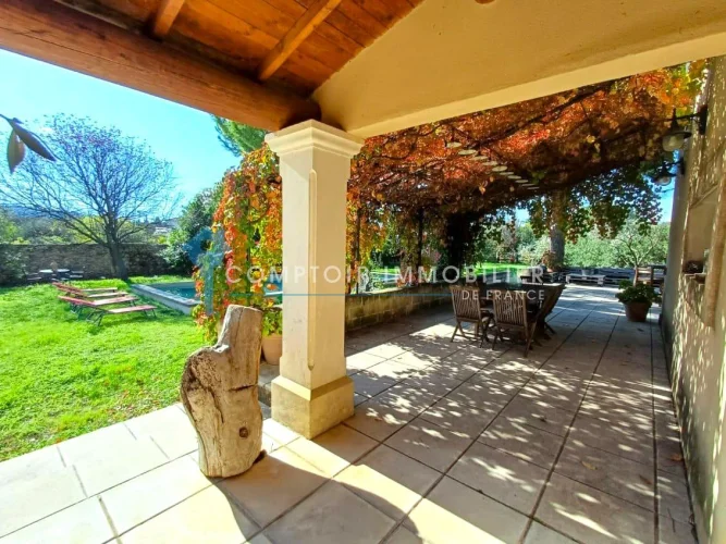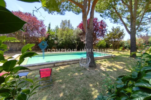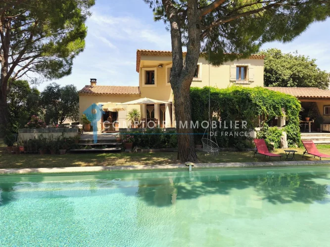 It is with great pleasure that Agence en Provence presents to you exclusively a real gem nestled in the heart of the charming village of Boulbon. This characterful house, bathed in light thanks to its south-facing orientation, will seduce you with its welcoming atmosphere and its beautiful volumes. It offers a large, warm living room with a fireplace, a separate kitchen ideal for sharing good times, as well as an office. Upstairs, four beautiful bedrooms await you, accompanied by a bathroom equipped with a shower. The generous, buildable plot offers plenty of scope for expansion, depending on your wishes. Surrounded by a wooded park, the property also features an elegant Roman-style swimming pool (12 x 5 m), perfect for relaxing in complete serenity. You will appreciate the ideal location of this house, a stone's throw from amenities, in the heart of this charming Provençal village. To find out more or arrange a private tour, our team is happy to assist you.