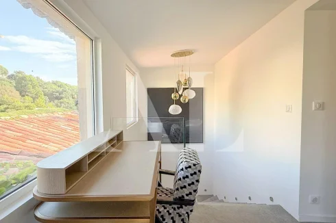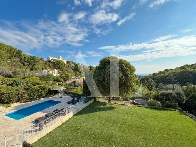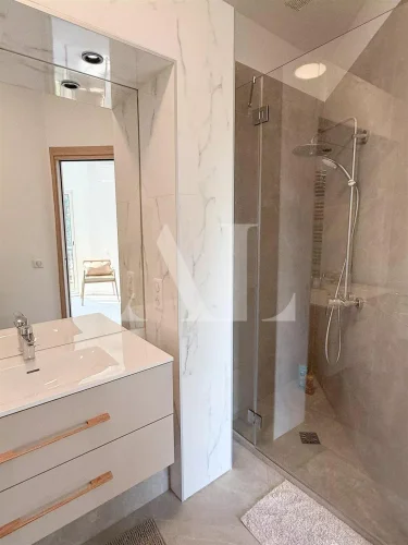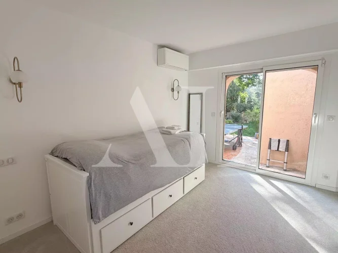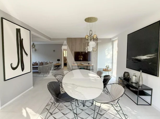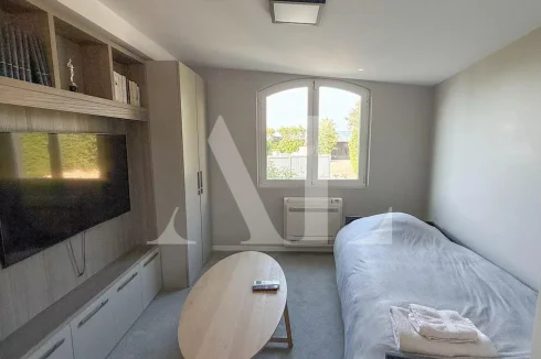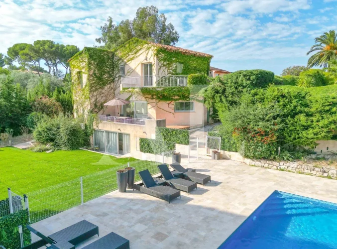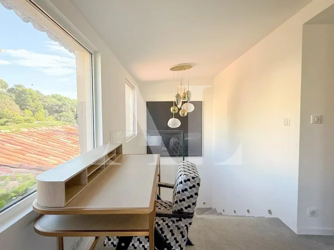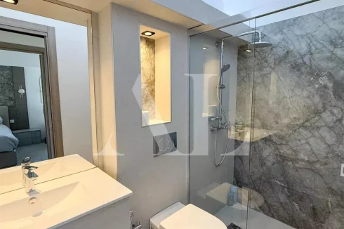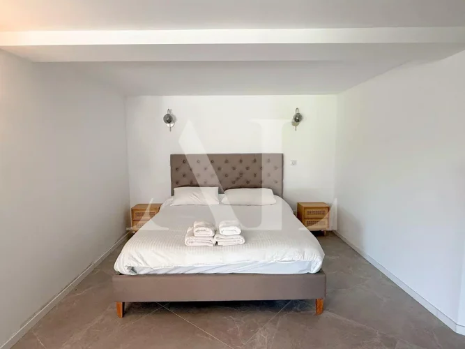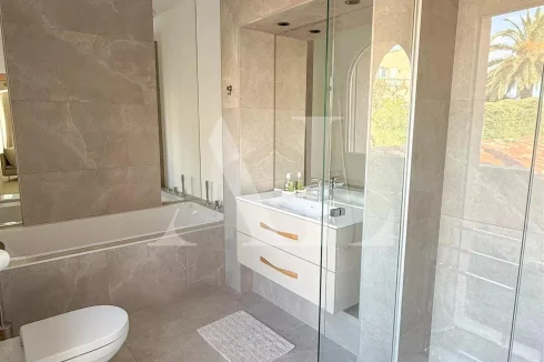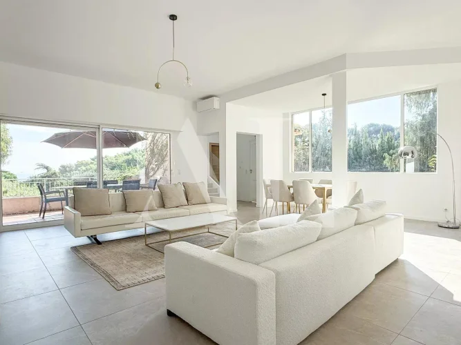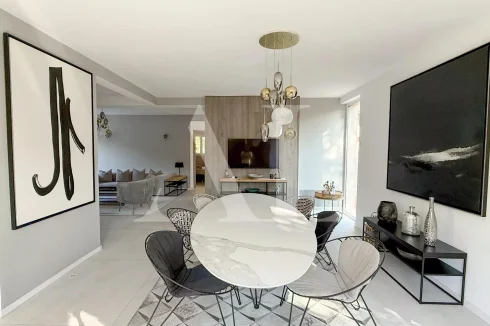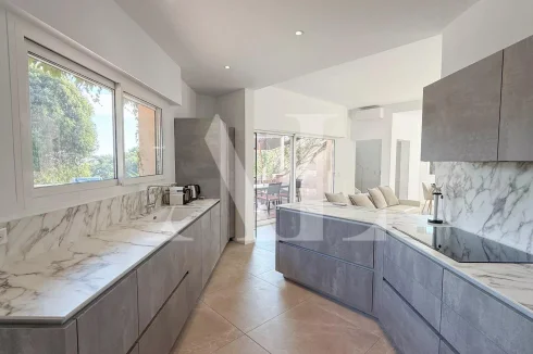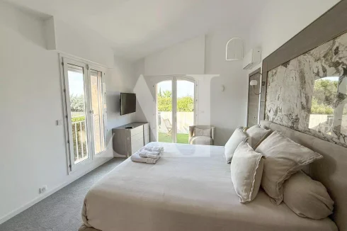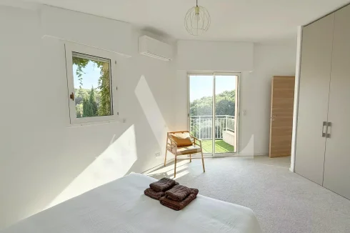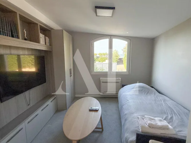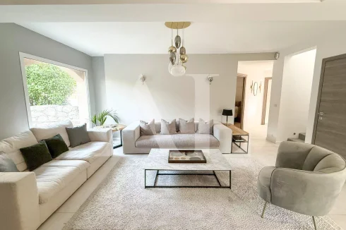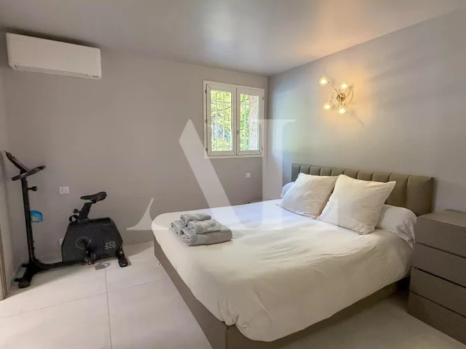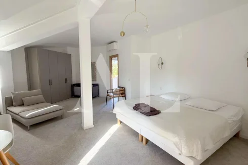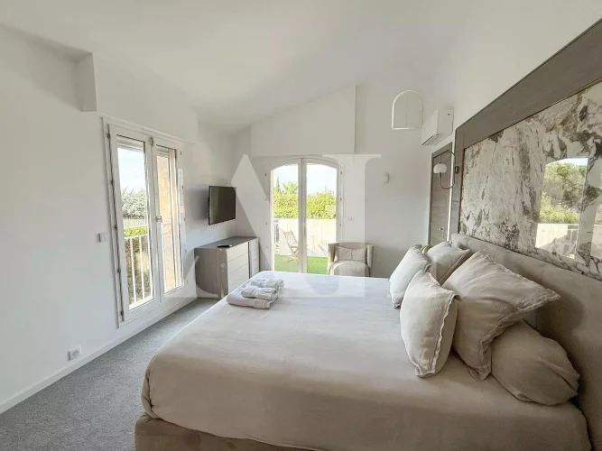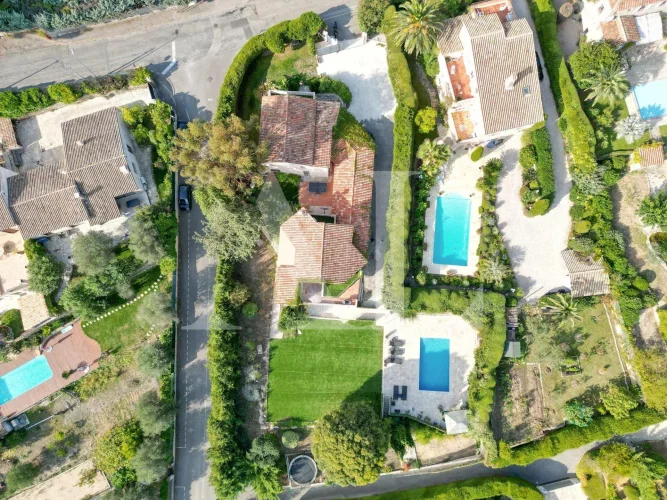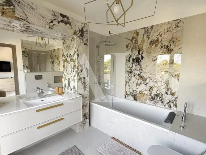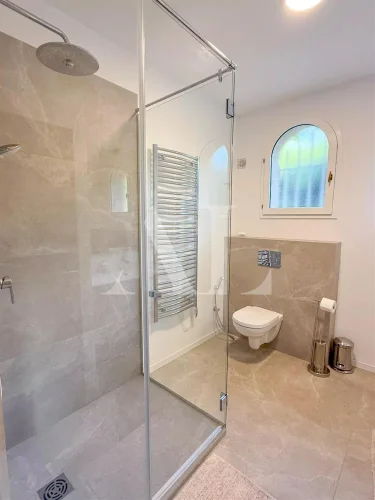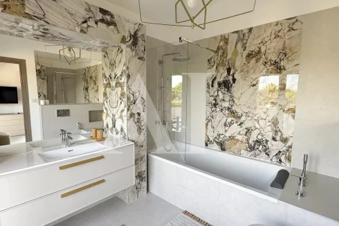 The second villa features an entrance hall, a kitchen open to the living room, three bedrooms each with their own bathroom, several walk-in closets, and an annex, a two-room apartment. Tastefully renovated and featuring high-quality features.
