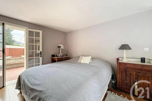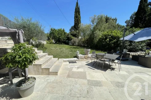 Close to amenities and at the foot of the old village of Mougins, on a plot of 590m², this charming house of 120m² is on 3 levels and has been recently tastefully renovated. On the first level, a living room, fitted kitchen and dining room. This level opens onto the terrace and the garden of the house. Upstairs, a landing /office space leads to the master bedroom with its bathroom and gives access to a terrace. On the top level, two bedrooms share a bathroom. A cellar in the basement.