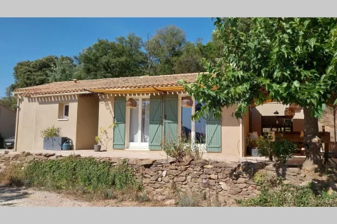 Build on one level, it presents an entrance, a bright living room with a wood stove, an office space and a fully equipped independent kitchen with dining space, and opening onto a pleasant an idyllic terrace protected by a mulberry plane tree brining natural shadow in summer.