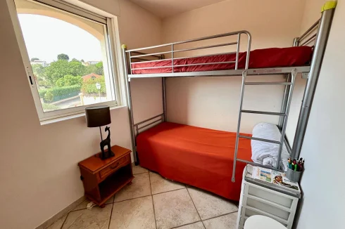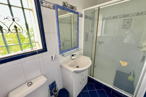 Upstairs: a bedroom with terrace and sea view, an extra bedroom and a bathroom with toilet.