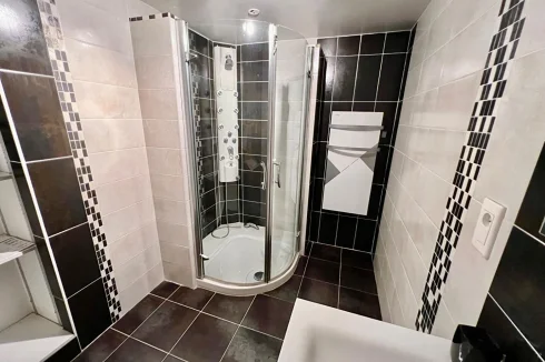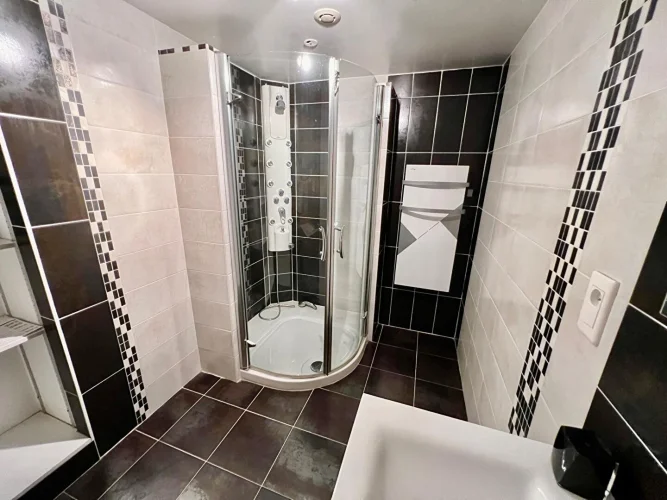 Garden level: an independent 2-room apartment with a bedroom, a shower room, a living room and a separate toilet.