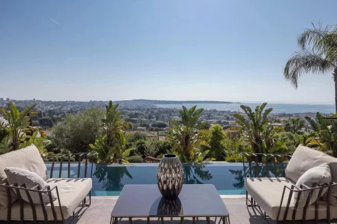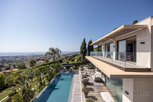 Poised in a commanding position between Cannes and Cap d’Antibes, this newly constructed architect-designed villa is a masterpiece of contemporary elegance and refined luxury. Designed by the renowned architect Mauclet and set within 2,650 square metres of terraced Mediterranean landscape, this extraordinary residence spans 575 square metres and offers panoramic views that stretch across the azure waters to Cap d’Antibes and the Lérins Islands.