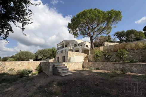 The villa’s layout has been conceived for both elegant entertaining and relaxed everyday living. A vast reception area opens onto generous terraces and gardens, while the dining room and fully fitted bespoke kitchen blend style with functionality. The property offers five luxurious suites, including a spectacular master suite complete with its own private terrace and sweeping sea views.
