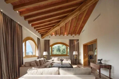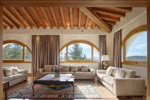 The main residence, with an interior surface of 616 m², welcomes you with an impressive double-height entrance gallery crowned by a cathedral ceiling. The triple-aspect living room is equally striking, complemented by a formal dining room, a private study, a breakfast kitchen and four spacious suites. Additional amenities include two guest WCs, a large laundry room and lift access to all levels.