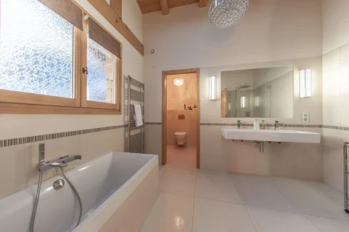 The chalet has an office space on the ground floor, and a technical services room on the garden level.
