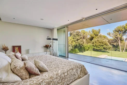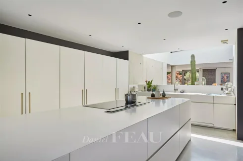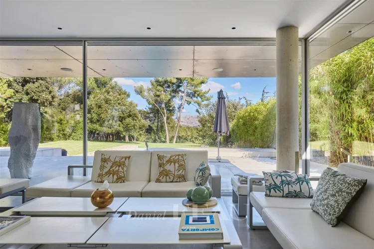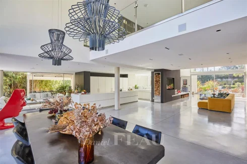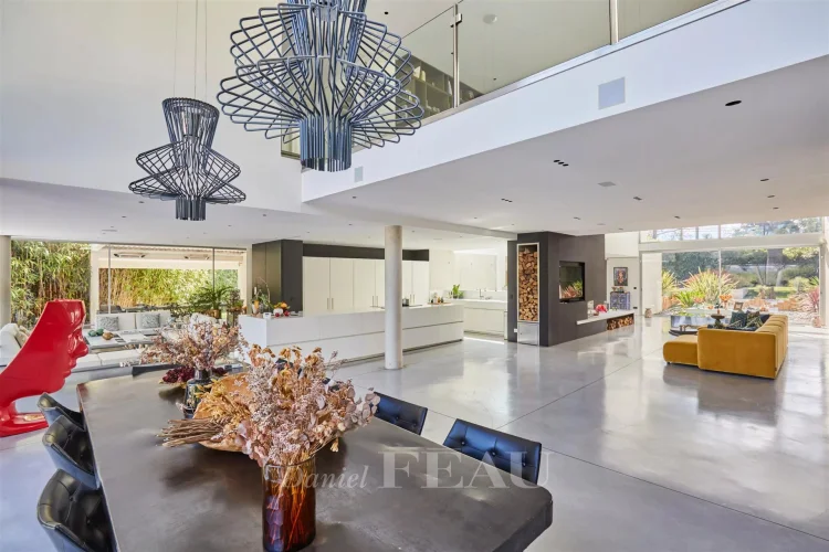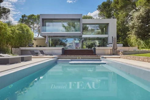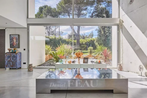 This resolutely contemporary 400 sqm property dating from 2011 is in a peaceful location 10 minutes from Cours Mirabeau and the centre of Aix, 15 minutes from the Tgv station, 25 minutes from the airport and near the autoroutes.