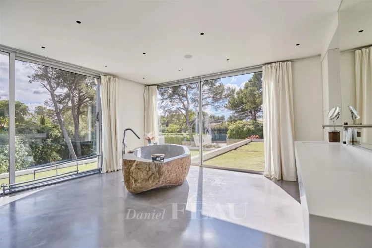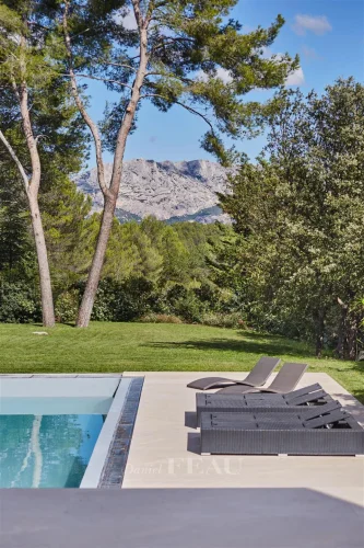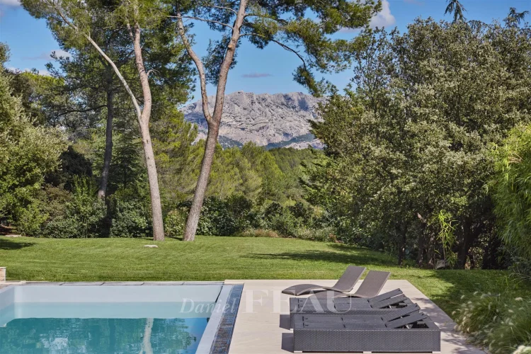 Set in 4000 sqm of grounds and commanding an exceptional view of the iconic Sainte Victoire Mountain, it includes a 180 sqm reception area, a 70 sqm home cinema, five bedrooms and a study.