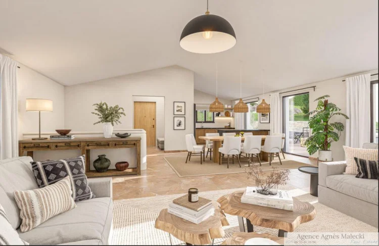 Co-Exclusivity. La Croix Valmer - Magnificent location in the private domain of Gigaro with secure access, for this property with exceptional finishes on a plot of 1,600m2, it will offer you 05 en-suite bedrooms, living room/kitchen, a 9 X 4.5 m swimming pool with terrace, garage, numerous parking spaces..... A few steps from Gigaro beach and bordered by an unbuildable plot!