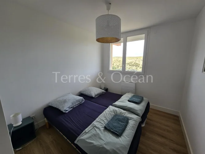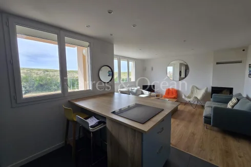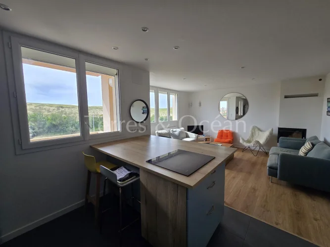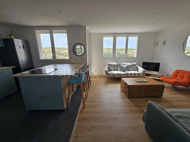 Facing the dunes in Hossegor, La Gravière, this 76 m2 two-bedroom apartment offers an exceptional living environment, right on the sand. Completely renovated in 2020 with high-quality fittings, it features a bright living room with an open-plan kitchen and a fireplace, opening onto a west-facing balcony. It also features a master suite with a dressing room, shower room, and private balcony, a bedroom, a second shower room, a separate toilet, and a pantry. A garage and bicycle storage room complete this rare property. A lifestyle all within walking distance, including the lake, ocean, town center, and amenities.