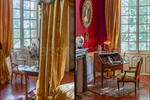 On the first floor, the Grand Gallery stretches almost forty meters, crossing the entire length of the Château. 'La chambre du Marquis' and the 'chambre du marquises have both been painstakingly restored to their former glory.