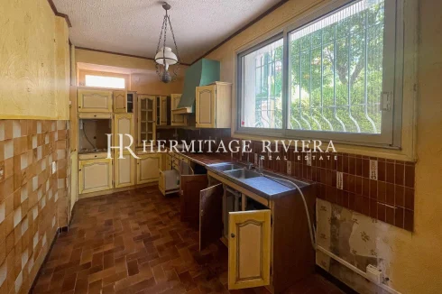 Requiring full renovation, the villa is arranged over two levels and presents vast possibilities for redesign, allowing for the creation of a bespoke project tailored entirely to your vision.