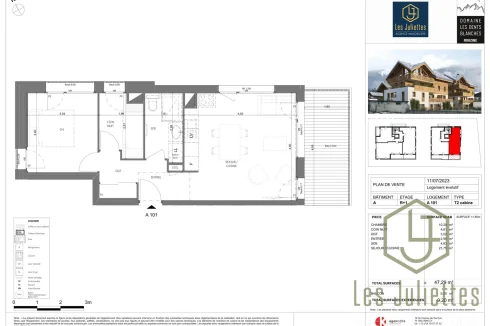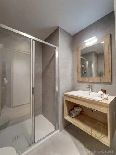 Discover this new apartment located on the 1st floor of Chalet A. Composition : Entrance with cupboard Living room opening onto a 9.20 m2 balcony Dining room/equipped kitchen Sleeping area including: Room. A shower room and Wc A mountain corner of 4.61 m2 Included : A cave An indoor parking space Fully equipped kitchen and bathroom Expected Delivery : Second quarter 2025 Information on the risks to which this property is exposed is available on the Géorisks website.