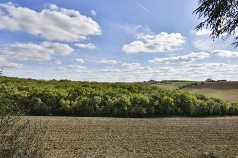 A quarter of an hour from Vic-Fezensac, the road stretches between the fields.