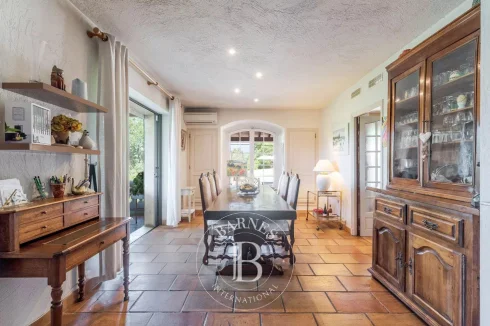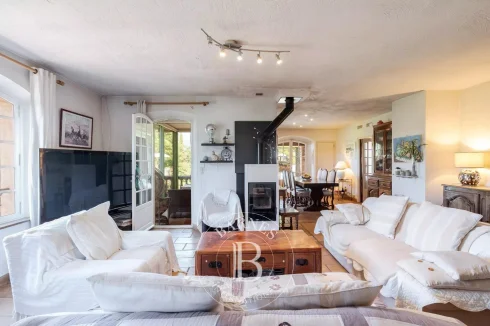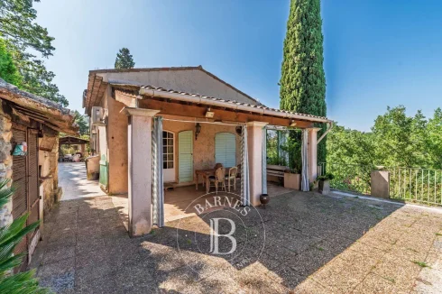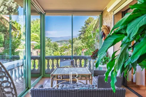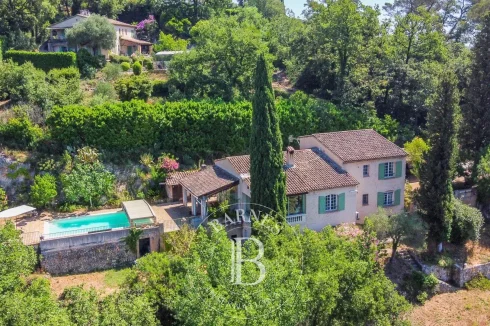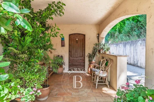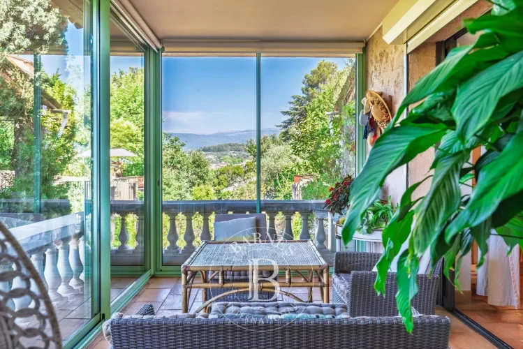 Exceptional location, in a dominant position within walking distance of the village of Valbonne and all amenities, enjoying a beautiful views of the hills and the village, Provençal villa of very good construction built on a partly terraced plot of more than 1,500sq.m with large terrace and its swimming pool with cover located at the level of the living room. It is composed on the ground floor of an entrance, living room and dining room with wood stove opening onto terrace and swimming pool, very beautiful veranda with hills views, equipped kitchen opening onto covered terrace, 3 bedrooms with bathrooms, on the garden level, large workshop that can be converted into a studio or fourth bedroom with its independent access. Carport and cellar. Perfect villa for a family wishing to live in the immediate vicinity of the village of Valbonne and schools.