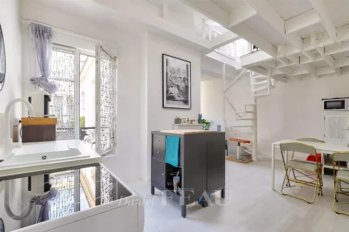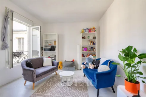 This two-room apartment is on the 4th and top floor of an early 20th century building with a leafy courtyard located near Choisy Park, the shops, the schools and the transport networks. Bright and peaceful, it offers 65.22 sqm of floor space and 37.90 sqm of living space as defined by the Carrez Law including a living room, a kitchenette, and a bathroom/wc. The converted attic comprises two bedrooms with study areas and walk-in wardrobes.