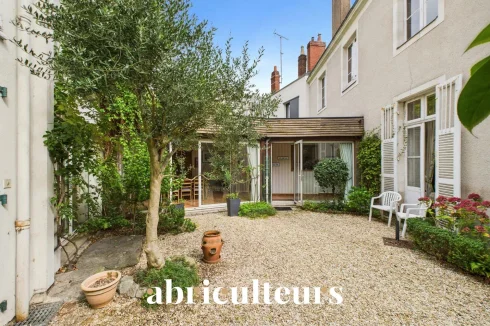 Center of Nantes, in the heart of a sought-after residential area, beautiful 8-room atypical house on 3 floors, ' bedrooms and an office, 3 shower rooms, with garage, workshop, courtyard-garden.
