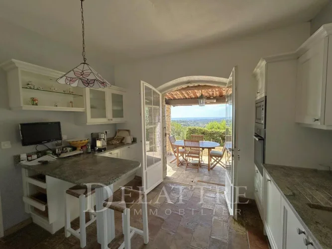 Ideally positioned in an elevated location, this architect-designed villa boasts panoramic views of the sea, the village, and nearby golf courses. Situated within immediate proximity to shops and schools, it offers both comfort and convenience.